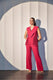 Fuchsia Pink V- Neck Pintucked Jacket & Pant Set