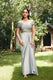 A sculptural silhouette in glazed organza and foil satin. Ice grey hues meet soft ruffles and a delicately embroidered blouse. Statement-making, yet serene.